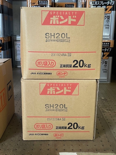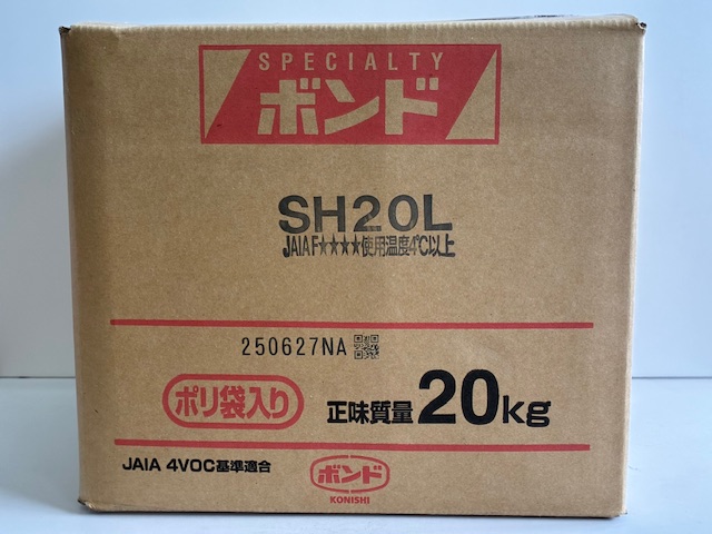 コニシボンド木工用SH20L 20kg α-オレフィン無水マレイン酸樹脂系エマルジョン形接着剤 一般木工用、木質フラッシュ用 メラミン化粧板と木質材料の積層接着 初期接着が良好